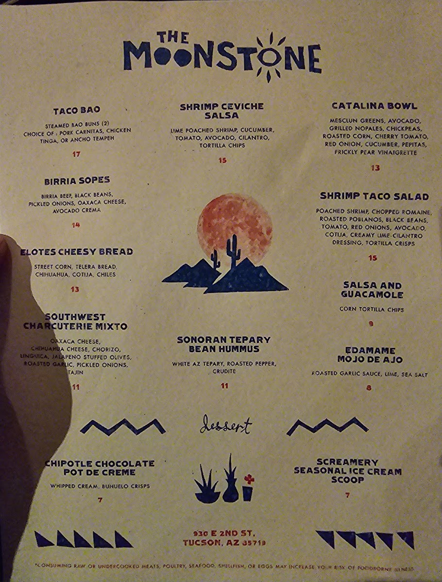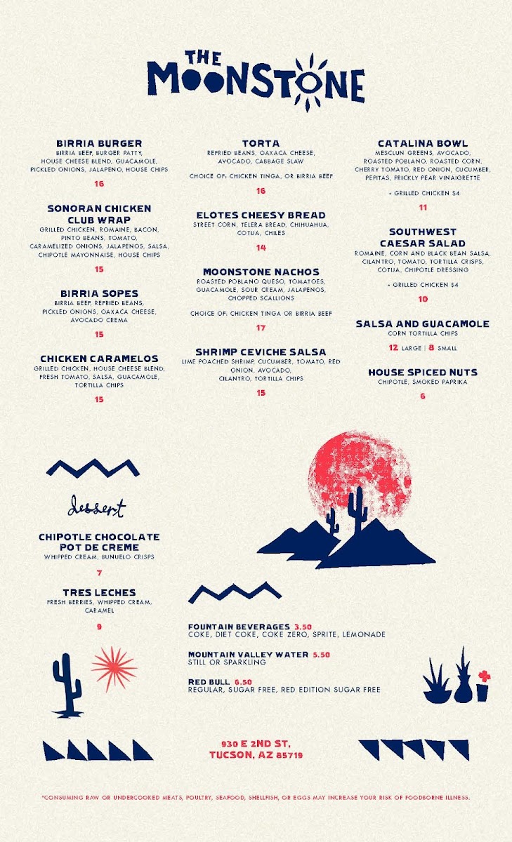 Welcome to The Moonstone, a cozy rooftop gem located at 930 E 2nd St, Tucson. This inviting eatery offers stunning views of the Tucson skyline paired with a creative bar menu featuring local spirits like whiskey, mezcal, and tequila. Guests rave about the Birria Burger, a rich and flavorful delight that perfectly complements the breathtaking surroundings.